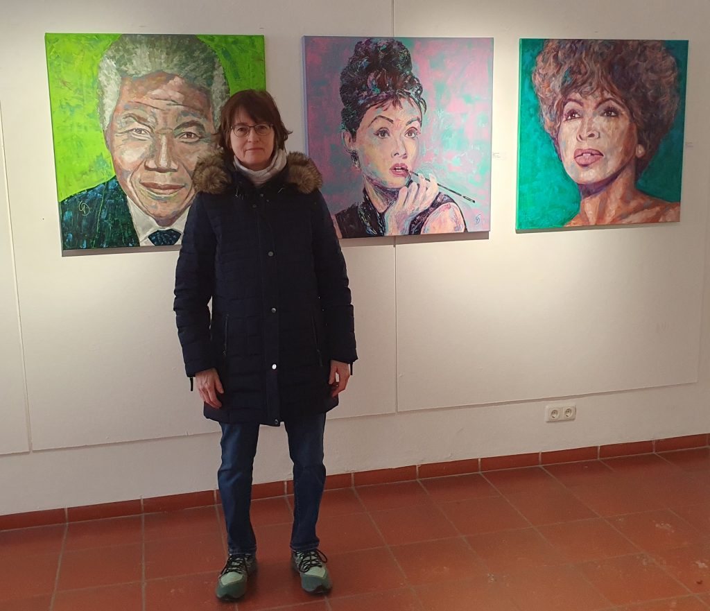 Auf der 13. Weihnachtsausstellung der Mitglieder des Kunstvereins Bayreuth e.V. im Alten Schloss war ich mit drei meiner Porträts vertreten: „Nelson„, „Audrey“ und „Tina„: