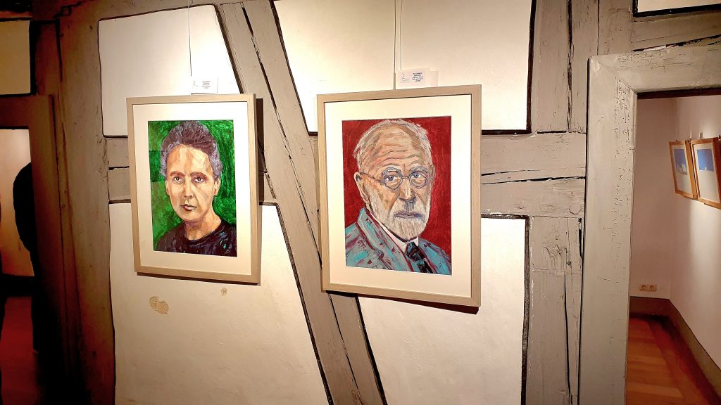 Meine beiden Porträts „Marie Curie“ und „Sigmund Freud“ waren bei der Herbst- und Winterausstellung des Kunstvereins Kulmbach im schönen Badhaus Kulmbach zu bewundern.